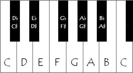 건반의 모양을 보면 E와 F사이와 B와 C의 음간격은 반음으로 그 사이에는 검은 건반이 없는데,